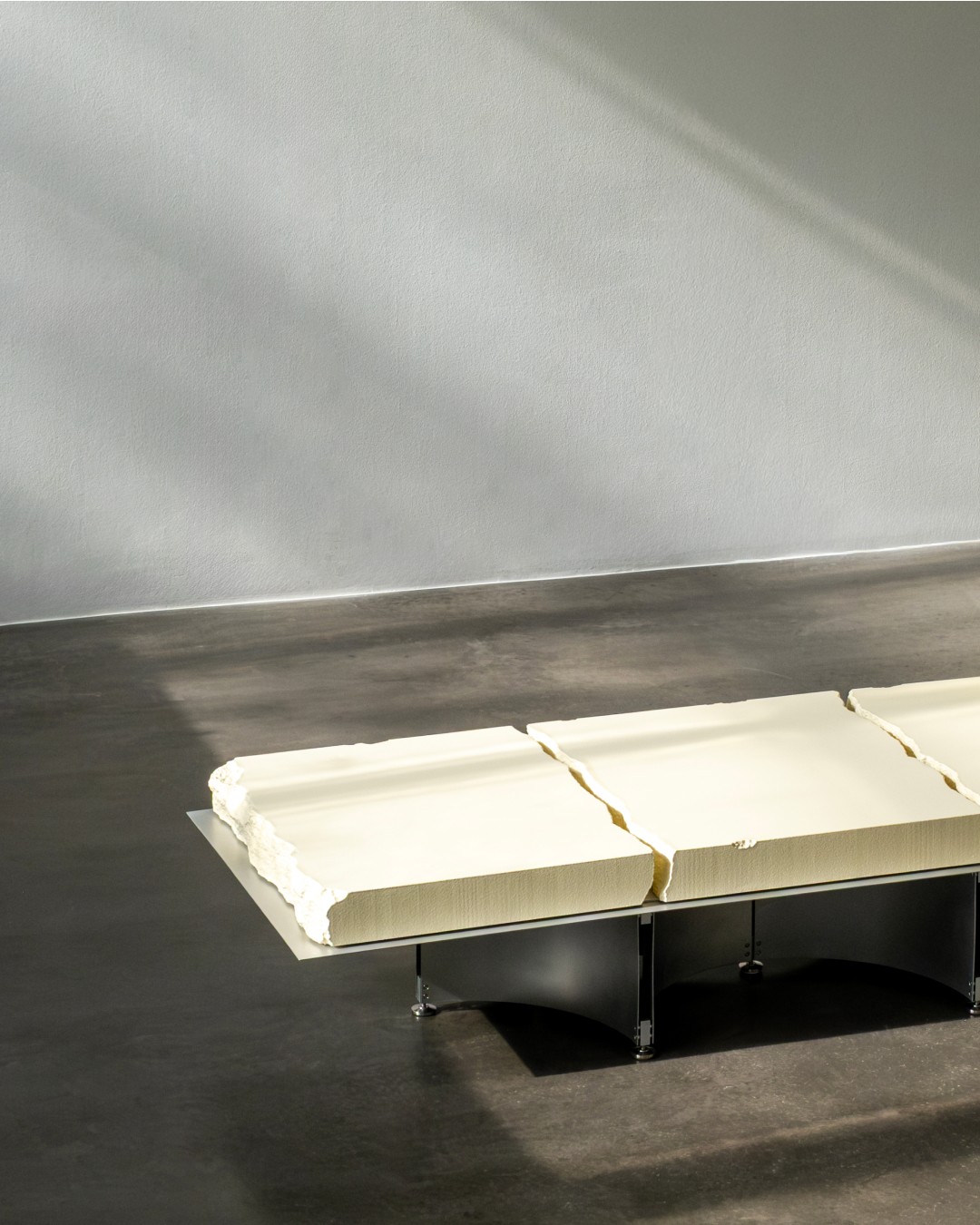 The new Daybed is an evolution of the original Lapis – Lounge Chair, the Daybed expands the collection’s sculptural language, introducing a refined technical and architectural base that elevates the piece both physically and conceptually.