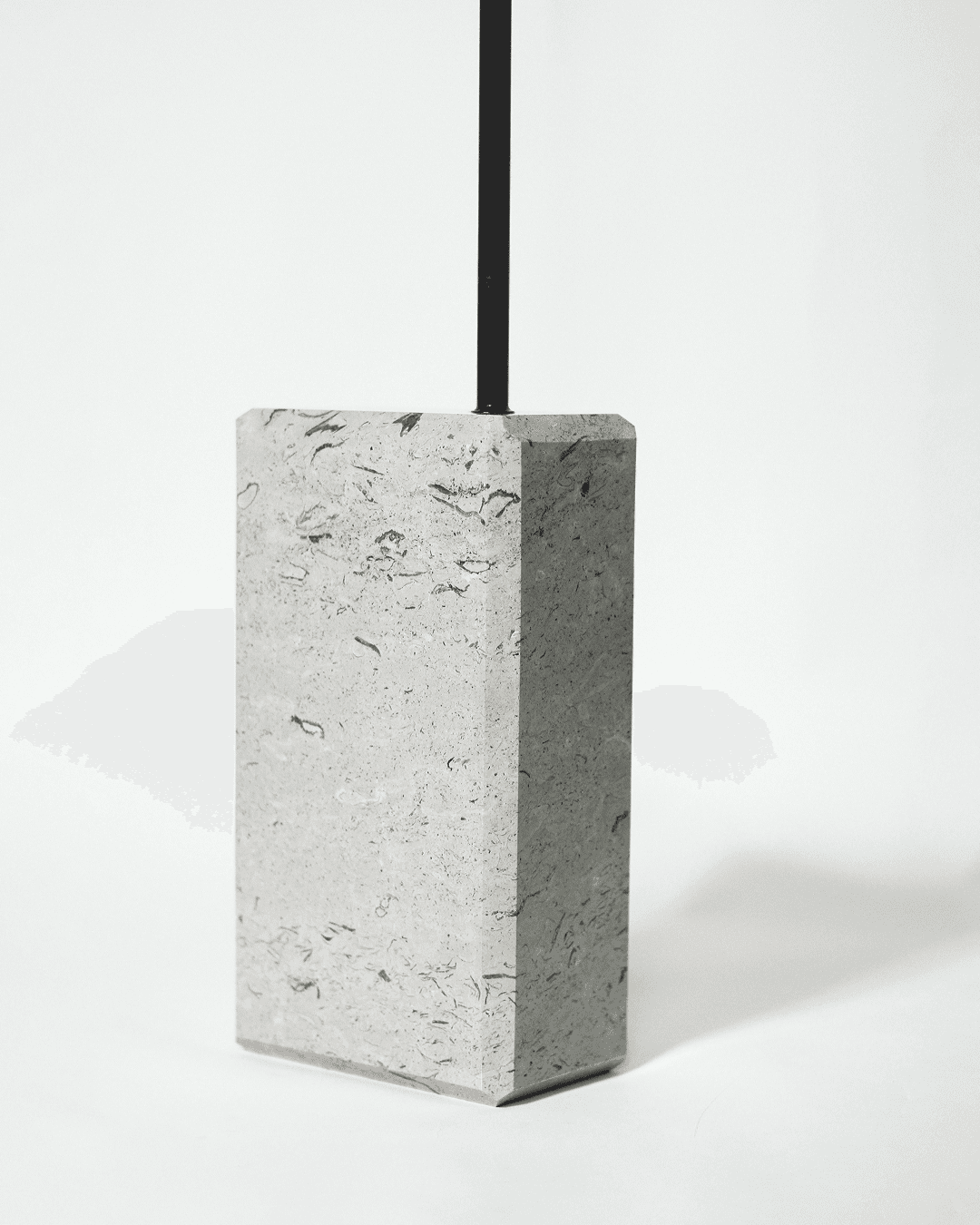 The juxtaposition of the two chosen materials enhances the object's balance: Karst stone, hard and dense, shows the traces of millennia within its essence, revealed through fossils.
