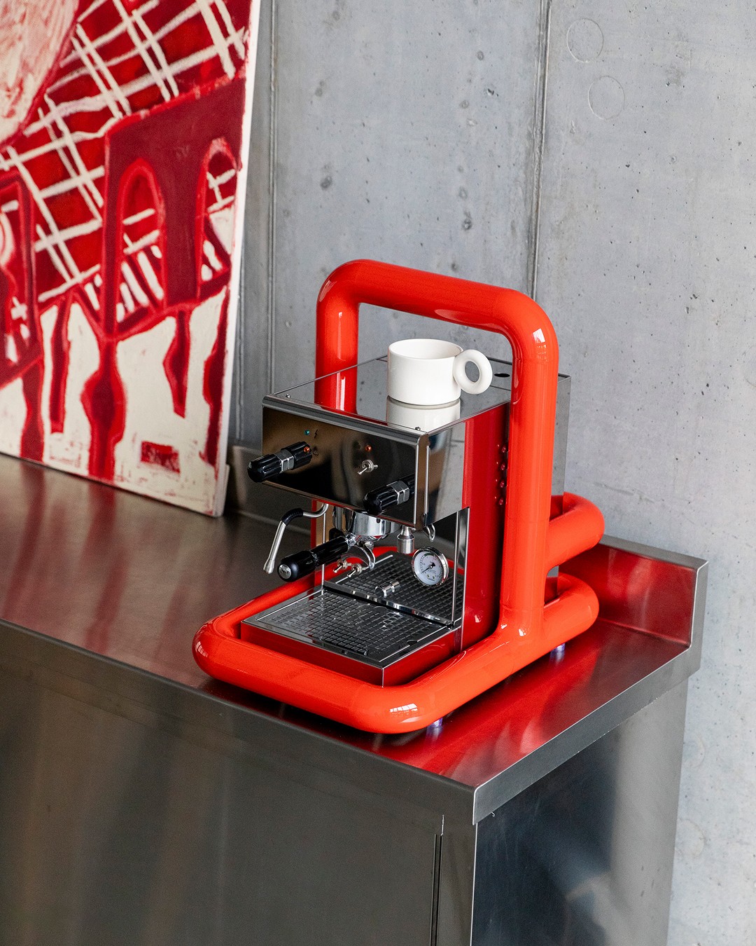 The Pipe Frame Mini is a sculptural frame designed to house a standard espresso machine, transforming a familiar appliance into a bold and playful object. Each piece is handcrafted in Germany, combining experimental form with precise craftsmanship.