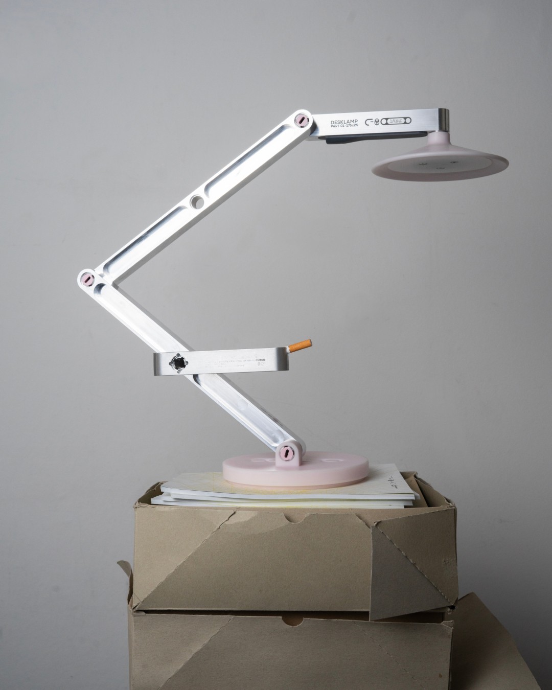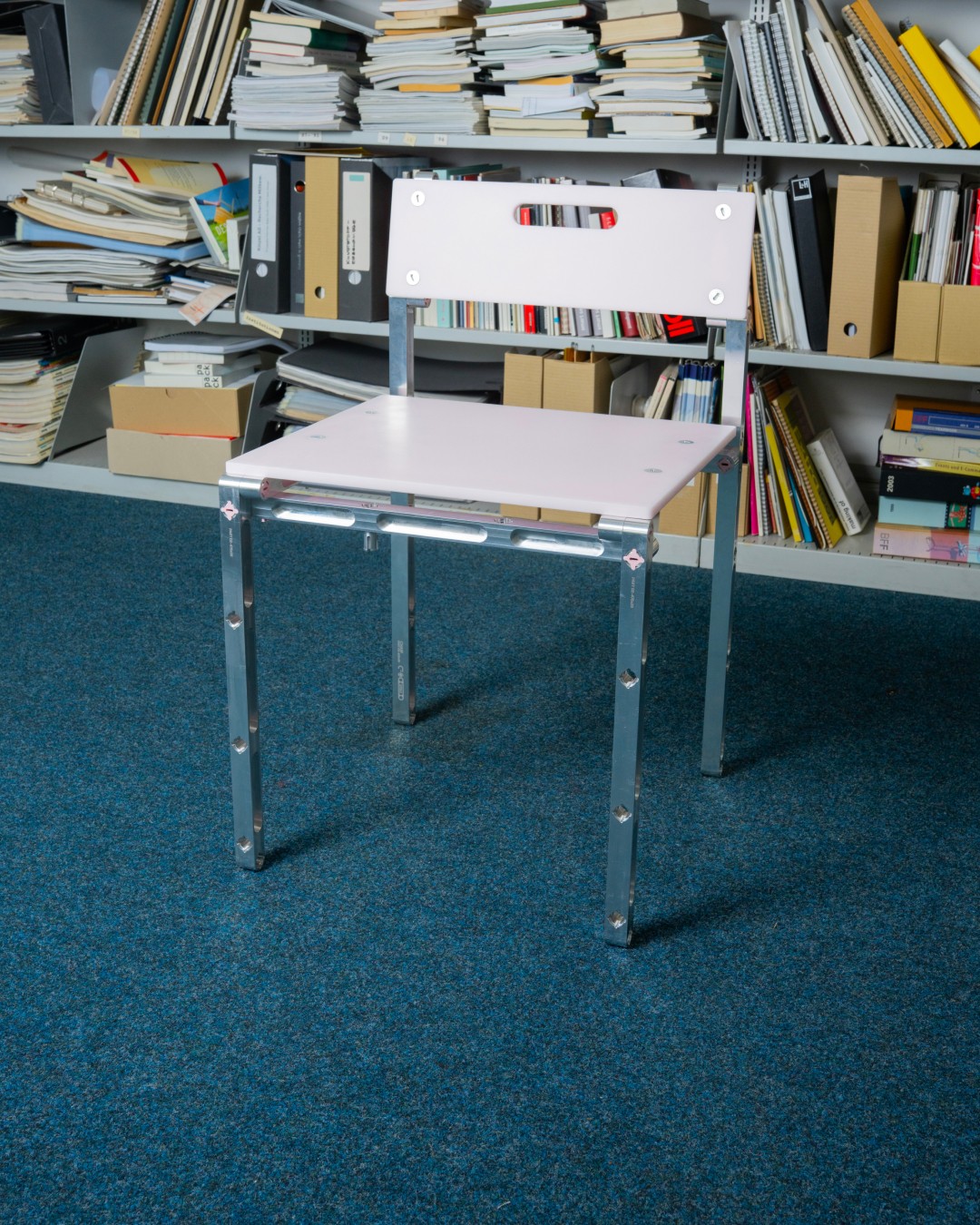 A chair and a lamp built from the same system reconfigurable, precise, and grounded in a shared structural language.